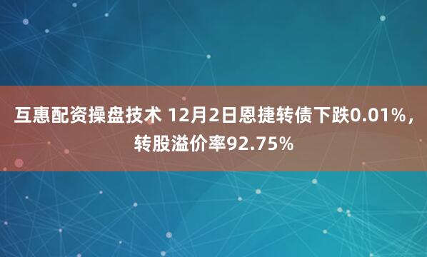 本站消息,12月2日恩捷转债收盘下跌0.01%互惠配资操盘技术,报111.47元/张,成交额1016.12万元,转股溢价率92.75%。